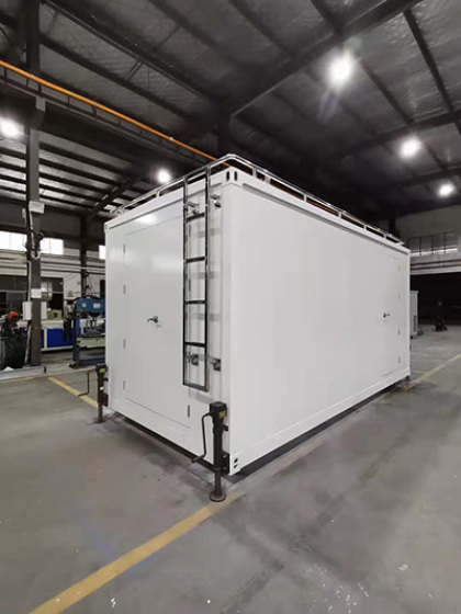 近日,我公司为某单位顺利交付超级运载方舱。本项目的超级运载方舱,为我公司自主研发设计、生产制造和安装调试。超级运载方舱长约21m,宽约2.5m,高约2.8m;设计承重≧30t,底板均布荷载≥600kg/㎡。超级运载方舱的主要技术参数:Ø超级运载方舱可用于目标物体平移进出,垂直进出(通过吊装方式)。Ø目标物体平移进出功能:l在方舱底板上设置导轨,导轨上方配置承载托架;l目标物体放置、固定在承载托架上,可实现平移进出。Ø目标物体垂直进出(通过吊装方式):l在方舱顶部设置可电动开启的顶门;l采用16只铝合金电动推杆