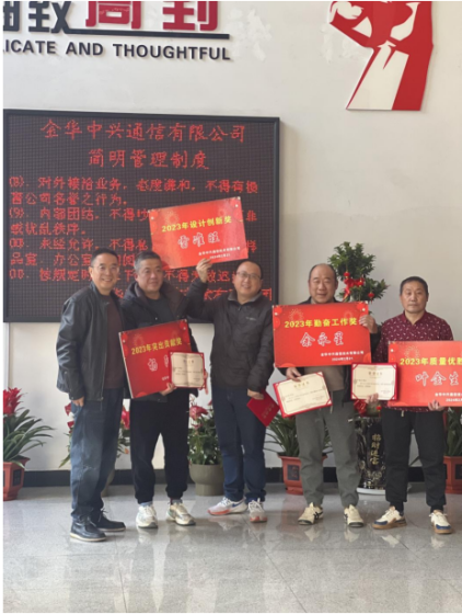 2025年2月12日(农历正月十五),值此元宵佳节之际,金华中兴通信技术有限公司隆重举行2024年度先进员工表彰大会。在热烈的掌声中,公司副总经理吴昶磊为先进员工颁发荣誉证书及奖金,以表彰他们在过去一年中为公司发展作出的突出贡献。一、质量进步奖:沈建文(生产管理中心)奖项说明:在2024年中通建一局一体化机房项目巡检工作中,积极配合公司调派,2024年3月-11月之间多次前往黑龙江及内蒙古无人区。克服恶劣的施工条件,保质保量完成巡检工作,对现场问题进行细致的修复处理。由沈建文巡检后的站点未出现二次质量问题,顺利通过项目